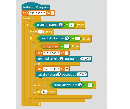 Trong bài này chúng ta sẽ bật tắt led bằng nút nhấn (lưu được trạng thái nút nhấn).