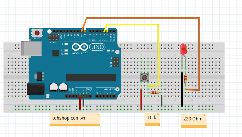 Bài 3: Điều khiển bật tắt Led bằng nút nhấn.