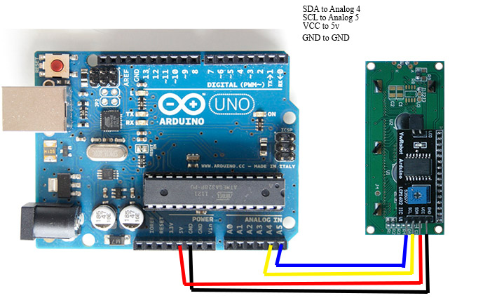 Với module chuyển giao tiếp LCD sang I2C, các bạn chỉ cần 2 chân (SDA và SCL) của Arduino kết nối với 2 chân (SDA và SCL) của module là đã có thể hiển thị thông tin lên LCD. Ngoài ra có thể điều chỉnh được độ tương phản bởi biến trở gắn trên module.