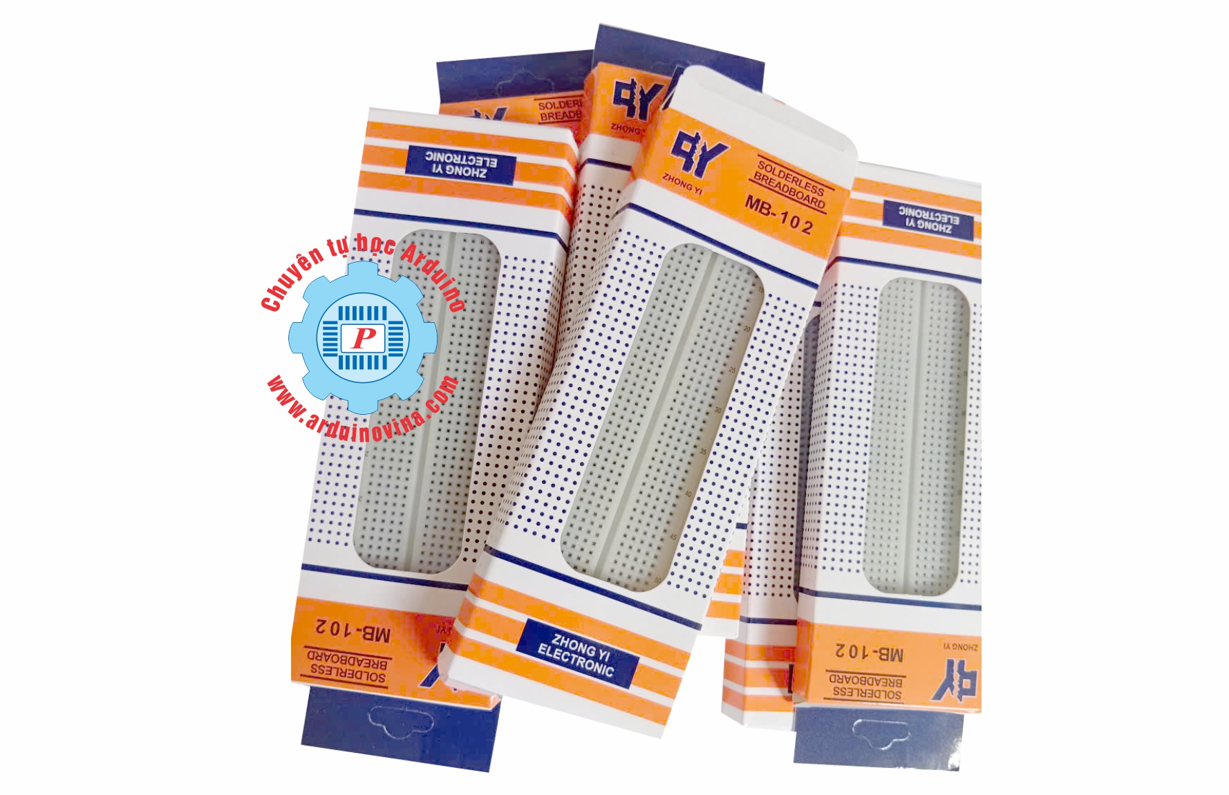 MB102 là module nguồn gắn breadboard, giúp cấp nguồn dễ dàng cho các linh kiện trên mạch thử.